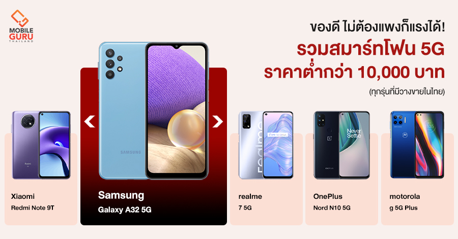 ของดี ไม่ต้องแพงก็แรงได้! รวมสมาร์ทโฟน 5G ในเรทราคาต่ำกว่า 10,000 บาท ทุกรุ่นที่มีวางขายในไทย!