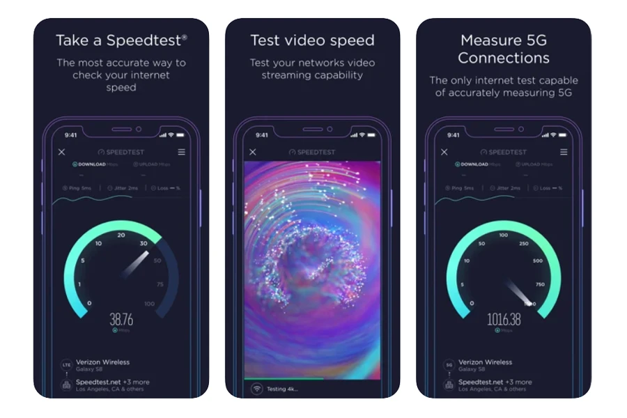 Speedtest by Ookla แอปพลิเคชันสำหรับทดสอบความเร็วอินเทอร์เน็ตที่มีความแม่นยำและได้รับการยอมรับในมาตรฐานสากล โดยเมื่อเรากดทดสอบ แอปพลิเคชันจะทำการวัดสปีดอินเตอร์เน็ตของตัวเครื่องในขณะที่เรากำลังใช้งานอยู่ แล้วแสดงผลข้อมูลความเร็วดาวน์โหลด และอัพโหลดเป็นเท่าไหร่ (กี่ Mbpsb?) รวมทั้งค่า Latency หรือความเร็วในการตอบสนองระหว่างเครื่องเซิร์ฟเวอร์ของผู้ให้บริการกับเครื่องคอมพิวเตอร์หรือมือถือของเรา (กี่ Ms?)