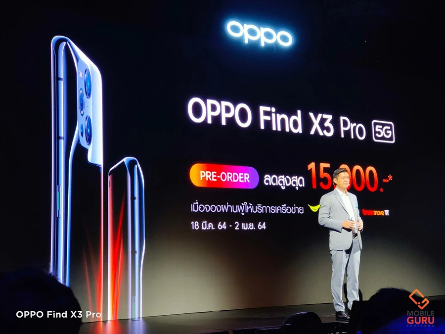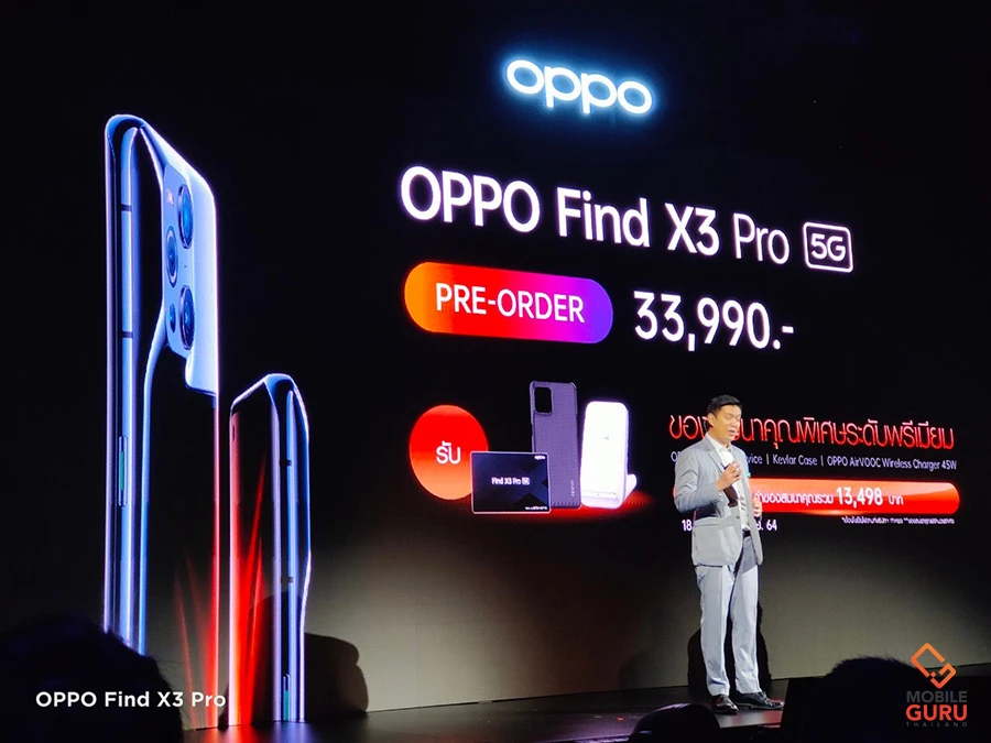 OPPO Find X3 Pro 5G สมาร์ทโฟนแฟล็กชิพที่สุดแห่งพันล้านสี วางจำหน่ายในราคา 33,990 บาท พร้อมเปิดให้ พรีออเดอร์แล้วตั้งแต่วันนี้ - 2 เมษายน 2564 รับฟรี! OPPO AirVOOC Wireless Charger 45W, KEVLAR Case และ Premium Card ที่มาพร้อมสิทธิรับประกัน International warranty service ซ่อมฟรีทั้งในและต่างประเทศ, รับความจุของ OPPO Cloud Service เพิ่มเป็น 1TB ในจำนวนจำกัด และสิทธิรับประกันตัวเครื่องถึง 2 ปี มูลค่ารวม 13,498 บาท