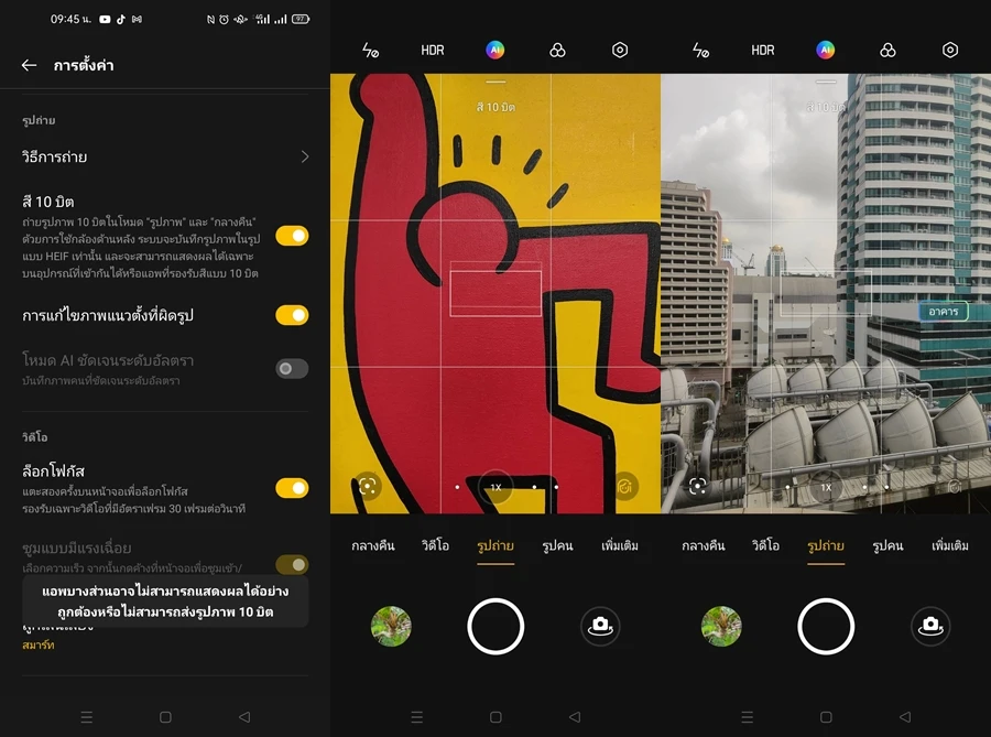 สำหรับการบันทึกภาพ 10-bit Colors จะบันทึกเป็นสกุล HEIF เท่านั้น ซึ่งทำให้เวลาจะเปิดใช้งานต้องใช้งานผ่านโปรแกรมที่รองรับสกุลนี้ รวมไปถึงต้องใช้หน้าจอที่รองรับ 10-bit Colors ด้วยนะครับ นอกจากภาพนิ่งแล้ว OPPO Find X3 Pro 5G ยังรองรับ CinematicMode โหมดการถ่ายวิดีโอ 1 พันล้านสี สามารถปรับแต่งด้วย LOG, BT2020 และปรับทุกอย่างได้อย่างละเอียดด้วยฟีเจอร์ Manual รวมทั้งรองรับการถ่ายภาพเป็นไฟล์ RAW+ ซึ่งมีการใช้ฟีเจอร์ HDR เข้ามาช่วยให้มีคุณภาพมากขึ้น สามารถปรับแต่งต่อได้มากกว่าเดิม