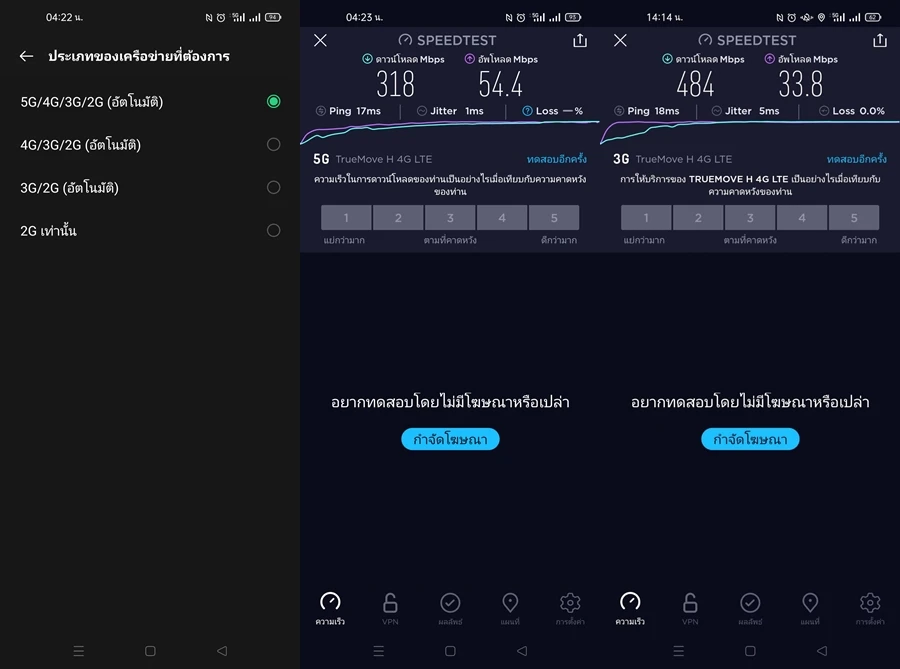 OPPO Find X3 Pro 5G รองรับสัญญาณ 5G ทั้ง 2 ซิมเลยครับ สามารถใช้งาน 5G ได้ครอบคลุมตามที่ผู้ให้บริการเครือข่ายรองรับ จากการทดสอบใช้งาน 5G จากแถวสยามไปจนถึงพระราม 2 สามารถรับสัญญาณได้ปกติ และใช้งานได้อย่างราบรื่น ผมได้ทดสอบสัญญาณที่ในห้องนอนผมเอง ที่พระราม 2 ซอย 60/1 และที่ตึก President Tower ชิดลม บริเวณชั้น 7 ผลที่ออกมาน่าพอใจมากๆ เลยครับ