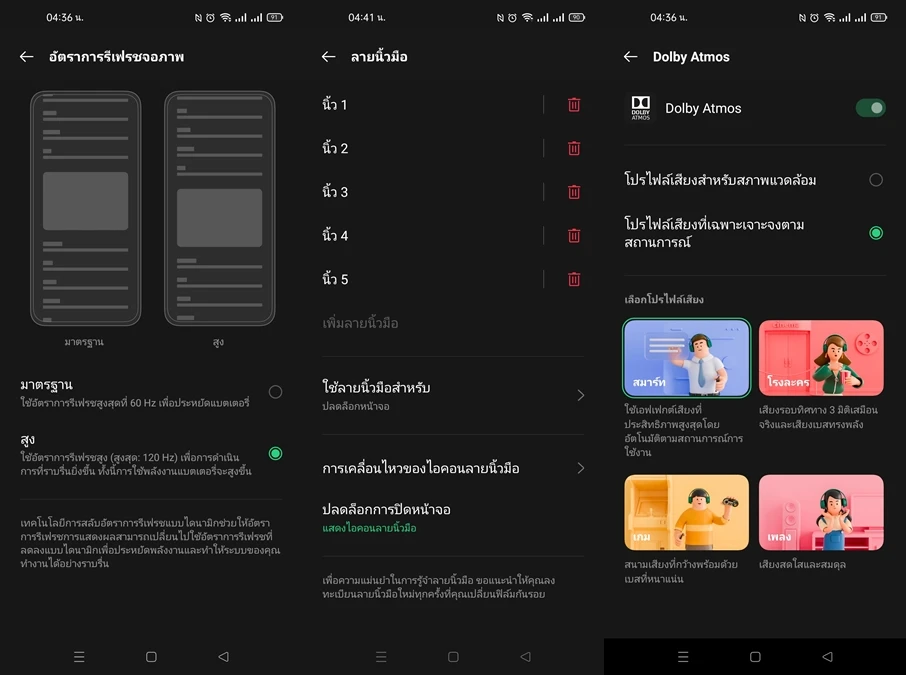 • เซ็นเซอร์ AI Face Access, Fingerprint (under display, optical), accelerometer, gyro, proximity, compass, color spectrum