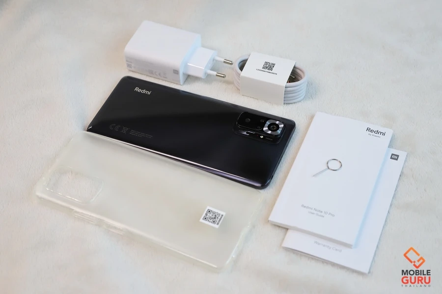 Redmi Note 10 Pro เป็นสมาร์ทโฟนที่ทีดีไซน์สวยมากๆครับ วัสดุและงานประกอบดีๆมากๆ ไม่ว่าใครได้เห็นก็พากันพูดเป็นเสียงเดียวเลยครับ ว่าสวยขนาดนี้ราคาแค่ 8,499 บาท เองเหรอ ตรงนี้ต้องขอชม Xiaomi จริงๆนะครับ ที่สามารถผลิตสมาร์ทโฟนที่ดูดี แถมยังอัดสเปคมาเกินราคาขนาดนี้ได้ ในกล่องจะประกอบด้วย ตัวเครื่อง, อะแดปเตอร์ชาร์จ, สาย USB Type-C, เคสใส (ฝาหลังด้าน), เข็มจิ้มซิม, คู่มือ จัดมาให้ครบ จะขาดไปก็แต่หูฟัง