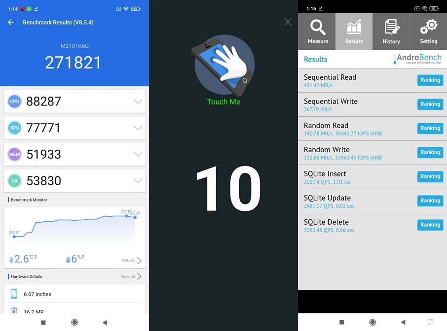 - ทดสอบด้วยแอปพลิเคชัน AnTuTu Benchmark ทำไปได้ 271,821 คะแนน