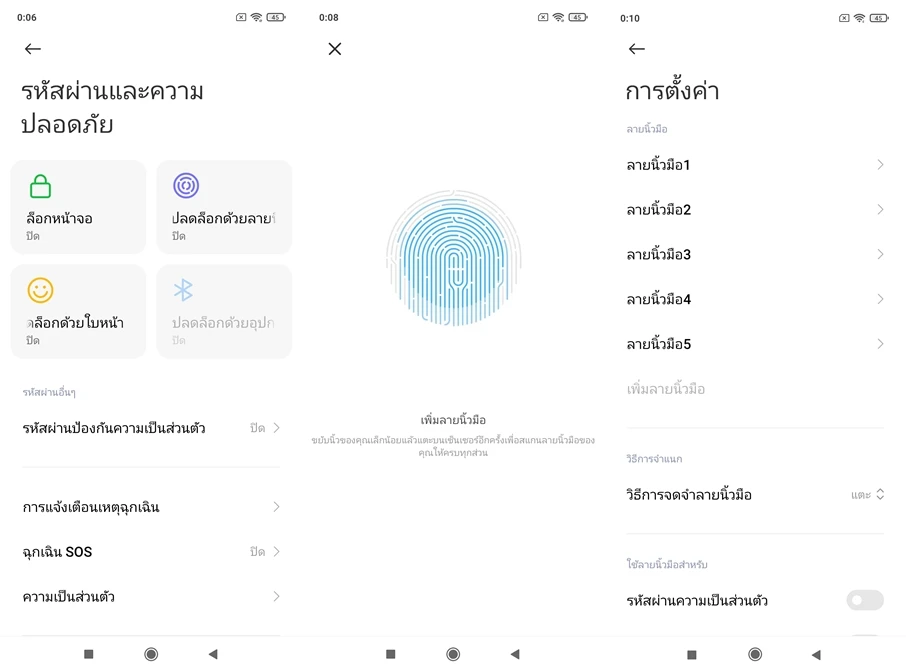 สำหรับสแกนลายนิ้วมือ จะรองรับสูงสุด 5 ลายนิ้วมือ และสแกนใบหน้ารองรับ 2 ใบหน้า ความรวดเร็ว และความแม่นยำทำได้ดีมากๆ