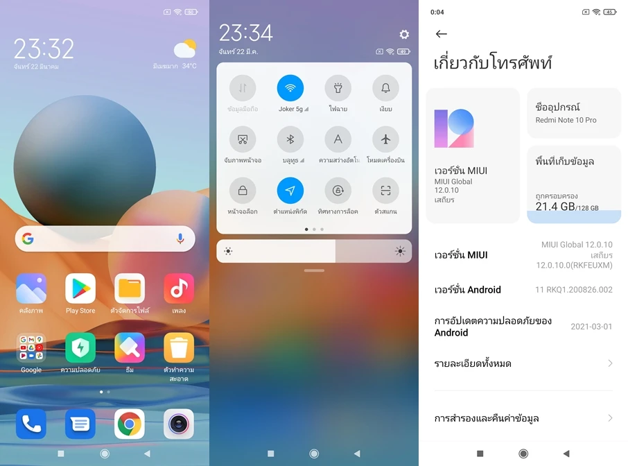 - ทำงานบน Android 11 ครอบทับด้วย MIUI 12