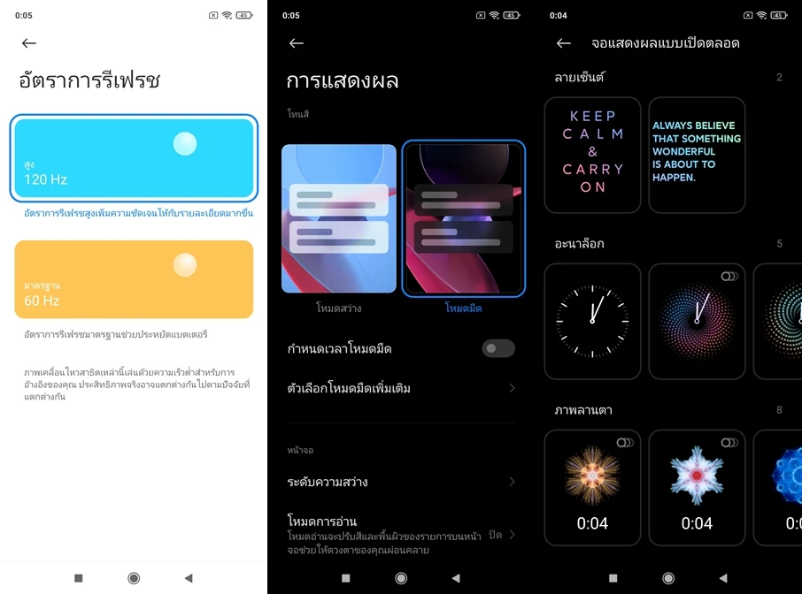 สำหรับฟีเจอร์พื้นฐานมีมาให้ครบ ฟีเจอร์ Alway On Display ที่ปรับแต่งได้เยอะมากๆ, เอฟเฟคแสดงผลต่างๆ ก็สามารถปรับแต่งได้อย่างละเอียด, Dark Mode ที่ปรับแต่งได้มากกว่าเดิม