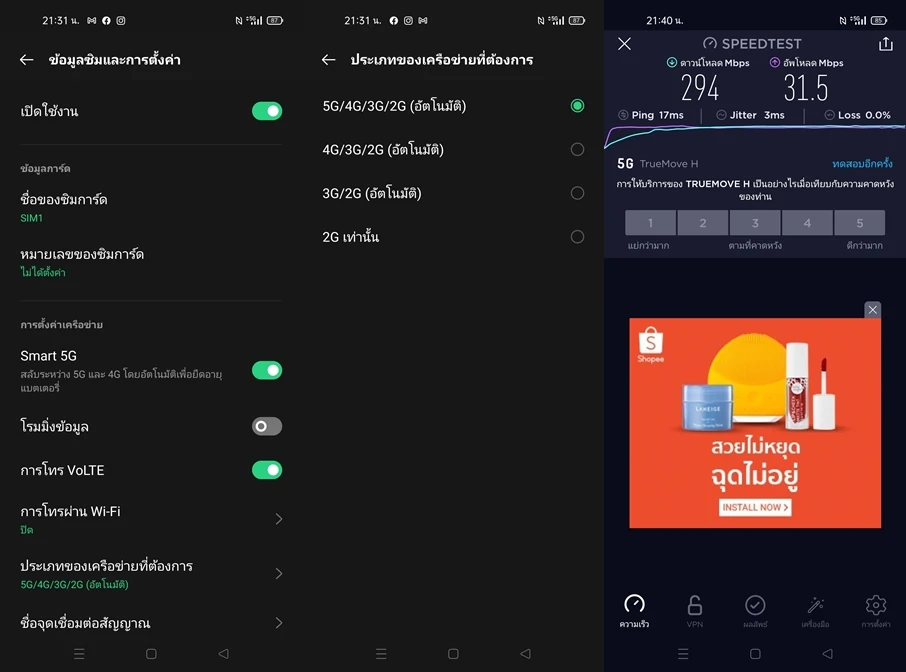 คะแนนทดสอบ 5G ของ OPPO Reno5 5G ทดสอบแถวพระราม 2 ซอย 60/1