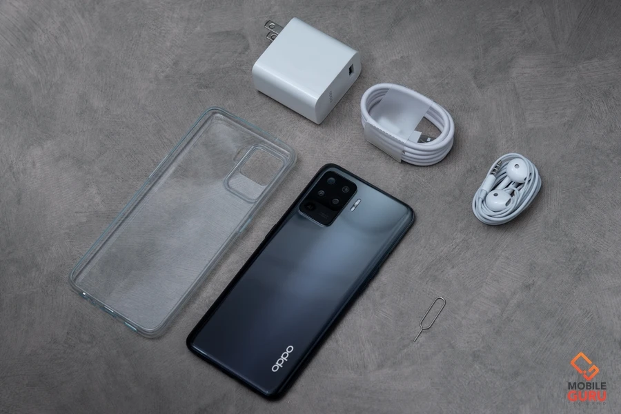 โดยในรุ่น OPPO A94 มาพร้อมสโลแกน "ใช้ชีวิตให้เต็มสปีด" มึความบางเพียงแค่ 7.8 มม. และเบาเพียง 172 กรัม เท่านั้นเอง ตัวเครื่องมีดีไซน์โค้งมน สีที่ได้มารีวิวเป้นสีดำ Fluid Black ผิวสัมผัสมันเงา แต่ไม่สะท้อนแสง ดูนุ่มนวล และมีลูกเล่นตามองศาต่างๆ เวลาที่เราเอียงตัวเครื่องไปมา รับรองว่าจะต้องถูกใจกันอย่างแน่นอน ในกล่องจะประกอบด้วย ตัวเครื่อง, อะแดปเตอร์ชาร์จ, สาย USB Type-C, หูฟังแบบ Earbud, เคสใส, เข็มจิ้มซิม, คู่มือ