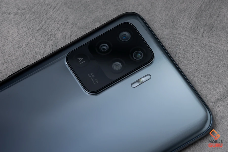 ด้านหลังดีไซน์กล้องสวยงาม พร้อมกล้อง 4 เลนส์ ความละเอียด 48MP Main Camera + 8MP Ultra Wide Angle + 2MP Macro + 2MP Mono และมีไอค่อน AI ประดับใว้อย่างสุดเท่ ส่วนไฟแฟลชจะดีไซน์เป็นทรงยาวๆ วางไว้ข้างชุดกล้อง ดีไซน์ด้านหลังให้ความรู้สึกขรึม และดูพรีเมี่ยมเอามากๆ