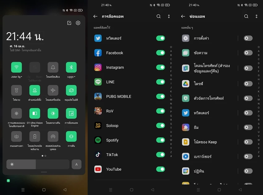 App Lock สามารถล็อคแอปใดๆก็ได้ ช่วยให้เวลาคนอื่นหยิบโทรศัพท์ของเราไปใช้ จะไม่สามารถเข้าใช้งานแอปฯ ที่เราไม่ต้องการให้เข้าถึงได้ สามารถเปิด-ปิดการใช้งานผ่านทางลัด Quick Toggle ได้เลย