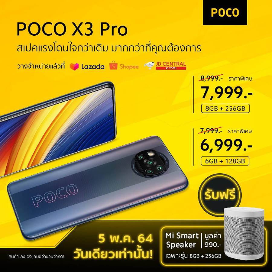 - POCO X3 Pro รุ่น 6GB + 128GB วางจำหน่ายในราคา 7,999 บาท