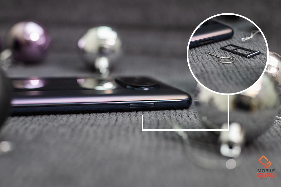 สำหรับด้านข้าง ด้านขวามือจะเป็นปุ่มเพิ่ม/ลดระดับเสียง และปุ่ม Power ซึ่งใช้เป็นเซนเซอร์สแกนลายนิ้วมือในตัวด้วย ส่วนด้านซ้ายมือจะเป็นช่องสำหรับใส่ซิมการ์ด 2 ช่อง สามารถเลือกได้ว่าจะใส่ SIM2 หรือ การ์ดหน่วยความจำ MicroSD ซึ่งรองรับสูงสุดได้ 1 TB