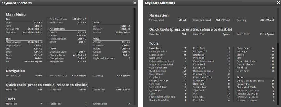 กล่องเครื่องมือ แถบเมนูคำสั่ง และพาเนลการใช้งานต่าง ๆ ก็คือถอดแบบมาจาก Photoshop เป๊ะ ๆ นอกจากนี้ยังสามารถใช้คีย์ลัดได้ด้วย คำสั่งเหมือนกับที่เราใช้กันปกติเลย มีแตกต่างแค่นิดหน่อยเท่านั้นค่ะ