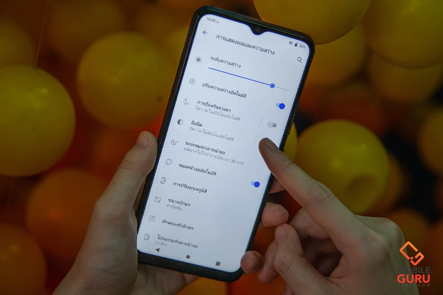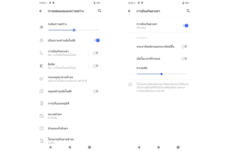 - โหมดถนอมสายตา : เมื่อเปิดโหมดนี้ตัวหน้าจอแสดงผลจะตัดการแสดงผลของแสงสีฟ้าออกไปให้ ดังนั้นโทนสีของหน้าจอจะกลายเป็นสีเหลืองนวล ช่วยถนอมสายตาและลดอันตรายจากแสงสีฟ้าที่ส่งผลต่อดวงตาลงได้