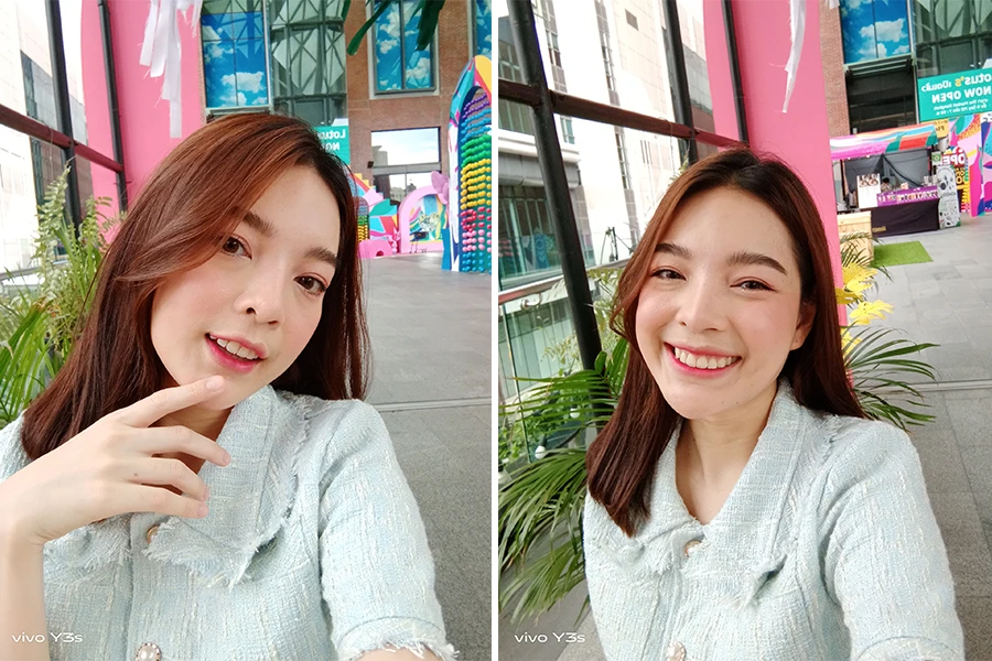 กล้องหน้าของ vivo Y3s มาพร้อมกล้องหน้าตัวเดี่ยวเช่นกันครับ โดยมีความละเอียดอยู่ที่ 5MP (F1.8) มีซอฟต์แวร์โหมดถ่ายภาพมาให้เหมือนกับกล้องหลังทุกอย่างเลย เช่น โหมดบิ้วตี้, โหมดถ่ายภาพ Bokeh ลองไปชมภาพตัวอย่างจากกล้องหน้ากันว่าเป็นอย่างไรบ้าง?