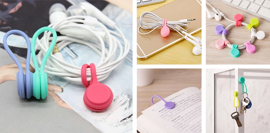สำหรับตัวช่วยแก้ปัญหาสายหูฟังชิ้นนี้มาในสีสันสดใส รูปแบบการใช้งานคล้าย ๆ กับการที่เราใช้หนังยางหรือเคเบิลไทร์รัดของนั่นเอง แต่ความพิเศษของเจ้าที่เก็บสายหูฟังนี้คือตรงปลายชิ้นส่วนจะเป็นแม่เหล็ก เมื่อเราม้วนสายหูฟังเรียบร้อยแล้วสามารถใช้ส่วนที่มีลักษณะเป็นเส้นคล้ายเชือกพันรอบเพื่อจัดเก็บให้เป็นระเบียบก่อน แล้วค่อยใช้ส่วนปลายที่เป็นแม่เหล็กประกบกันเป็นตัวล็อกกันไม่ให้หลุด เวลาที่จะแกะเอาสายหูฟังขึ้นมาใช้งานก็ทำได้ง่าย ซึ่งนอกจากใช้สำหรับการจัดระเบียบสายหูฟังแล้ว เจ้าอุปกรณ์ชิ้นนี้ยังสามารถนำไปประยุกต์ใช้ทำอย่างอื่นได้ด้วย เช่น ทำเป็นที่แขวนกุญแจ หรือที่คั่นหน้าหนังสือ คุ้มสุด ๆ