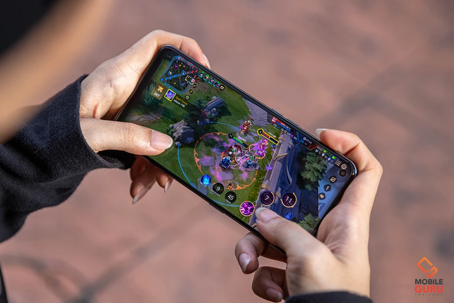 สำหรับการเล่นเกมบน realme GT 5G นั้น ลื่นไหลไม่ต่างจากที่คิดเอาไว้เลยค่ะ ด้วยสเปกที่จัดมาเอาใจชาวเกมเมอร์ เลือกใช้ชิปเซ็ตตัวแรงอย่าง Snapdragon 888 5G ที่มาพร้อม CPU Speed สูงสุด 2.84GHz ให้ประสิทธิภาพการทำงานสูงขึ้นถึง 25% และ GPU Adreno 660 ประสิทธิภาพสูงขึ้น 30% พร้อมด้วยการประมวลผลด้าน AI ที่เร็วขึ้น 70% รวมไปถึงการเพิ่มประสิทธิภาพทางด้านการตอบสนองด้วย Refresh Rate 120Hz และ Touch Sampling Rate 360Hz ช่วยให้เราสามารถใช้งานบนหน้าจอได้ลื่นไหลกว่าที่เคย โดยเฉพาะการเล่นเกมที่ต้องอาศัยในเรื่องความเร็ว ความลื่นไหล และการทัชหน้าจอที่แม่นยำ เอาเป็นว่าถูกใจสายเกมเมอร์แน่นอนค่ะ ทั้งเรื่องความเร็ว และภาพกราฟิกที่สวยงาม คมชัด