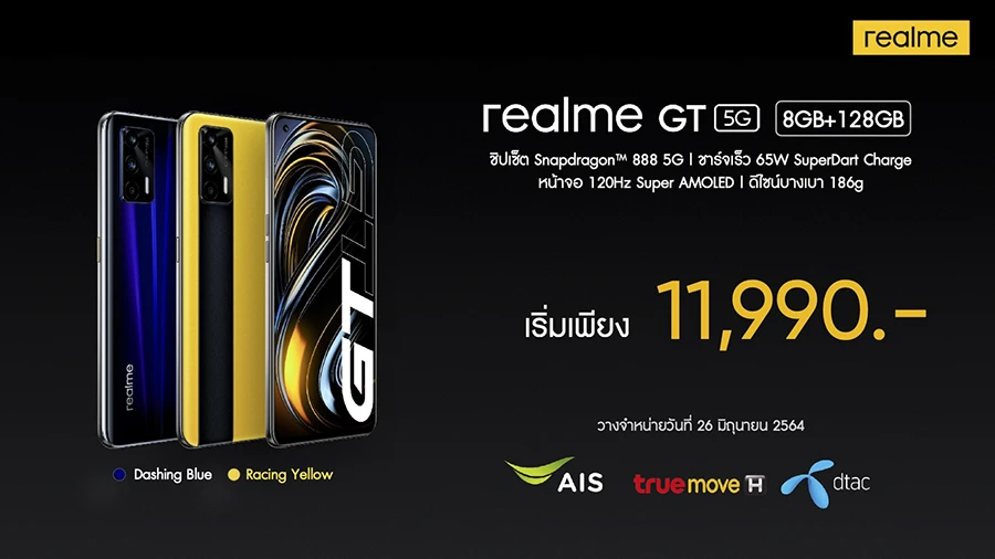 พิเศษ! สำหรับลูกค้า AIS, Truemove H และ dtac สามารถเป็นเจ้าของ realme GT 5G ได้ในราคาเริ่มต้นเพียง 11,990 บาทเท่านั้น*