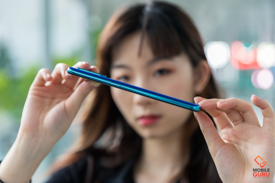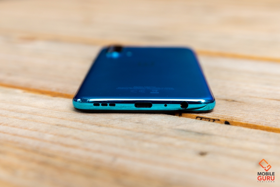 ขอบด้านข้างโค้งมนและเงาวับ ด้านบนมีไมค์ตัดเสียงรบกวน ส่วนด้านล่างมีพอร์ทหูฟัง 3.5 มม. ที่หลายๆคนต้องการ ก็นำกลับมาให้แล้วในรุ่นนี้, ไมโครโฟน, USB Type-C 2.0 และลำโพงตัวเครื่อง เสียงดังมากครับ และมีมิติคุณภาพลำโพงผมยกให้ว่าดีมากทีเดียว ส่วนด้านซ้ายมีช่องใส่ซิม และปุ่มปรับระดับเสียง และด้านขวามีปุ่ม Power