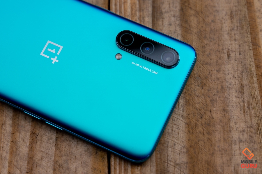 ด้านหลังมีกล้อง 3 เลนส์ ความละเอียด 64MP F1.79, 26 มม. (wide), PDAF + 8MP F2.25, 119 องศา (ultrawide) + 2MP F2.4, (depth) ค่อนข้างนูนขึ้นมาต้องระวังกันซักหน่อย ข้างๆจะมีไฟแฟลช LED และข้อความว่า 64MP AI Triple Camera และตรงกลางจะเป็นโลโก้วันพลัส