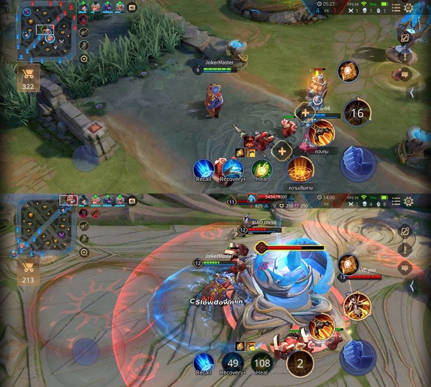 จากการทดสอบด้วยเกม ROV ค่าเฟรมเรท 59FPS นิ่งๆ ตั้งแต่ต้นจนจบครับเลยครับ เล่นไปกี่รอบก็ได้ค่าเดิมตลอด และสัมผัสการเล่นลื่นติดนิ้วดีมาก