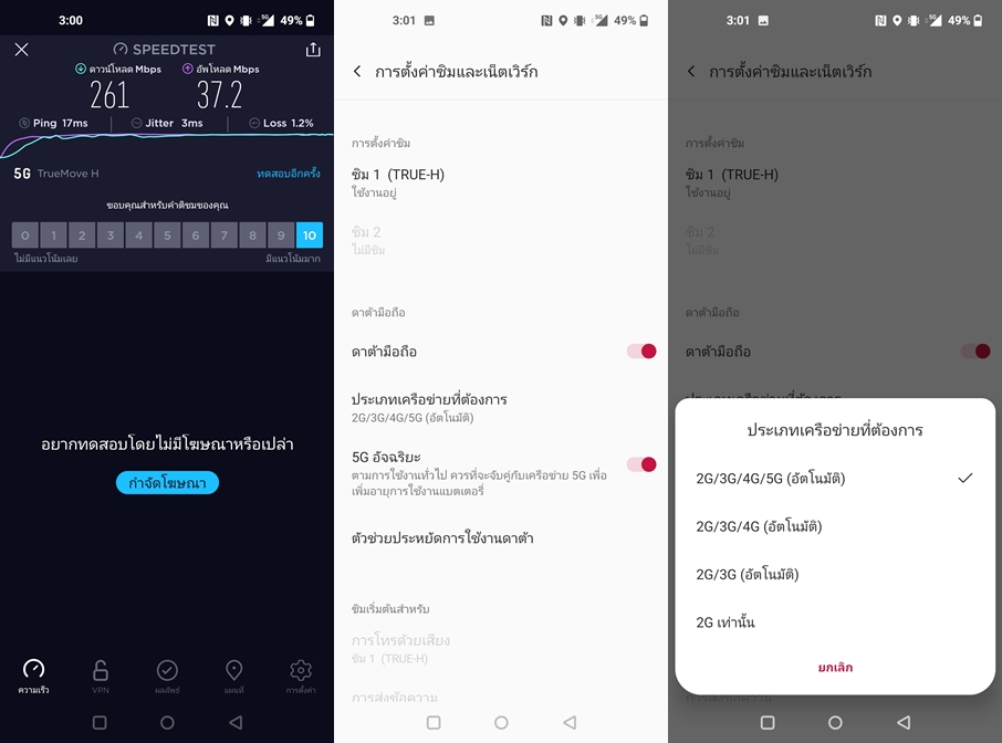 สำหรับในวันนี้ 5G กลายเป็นมาตรฐานใหม่ที่สมาร์ตโฟนรุ่นใหม่ควรจะรองรับแล้วนะครับ เพราะสัญญาณ 5G มีความพร้อม และมีราคาค่าใช้บริการที่จับต้องได้ง่าย ในตอนนี้กรุงเทพฯ แทบจะ 100% รวมไปถึงชานเมืองและจังหวัดใกล้เคียง หรือหัวเมืองใหญ่ๆ ของประเทศไทยรองรับ 5G เรียบร้อยแล้ว และถ้าไม่ติดเรื่อง COVID-19 ผมเชื่อว่าป่านนี้ทั่วประเทศไทยน่าจะเกือบรองรับ 5G ไปแล้วละ แน่นอนสำหรับ OnePlus Nord CE 5G รองรับสัญญาณ 5G ครับ และผมทดสอบแถวชานเมือง ช่วงพระราม 2 ผลออกมาน่าพอใจมากทีเดียว มีสัญญาณครอบคลุมไม่มีปัญหาครับ