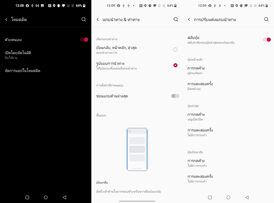 รองรับ Dark Mode, ปรับแต่งรูปแบบการใช้งานว่าจะใช้ปุ่มกดแบบ On-Screen หรือ ควบคุมแบบ Gestures (ซึ่งตัวผมเองยังชินแบบปุ่มเสมือนอยู่ดี) และรองรับ Smart Gesture ที่สามารถปรับใช้ได้อย่างหลากหลาย