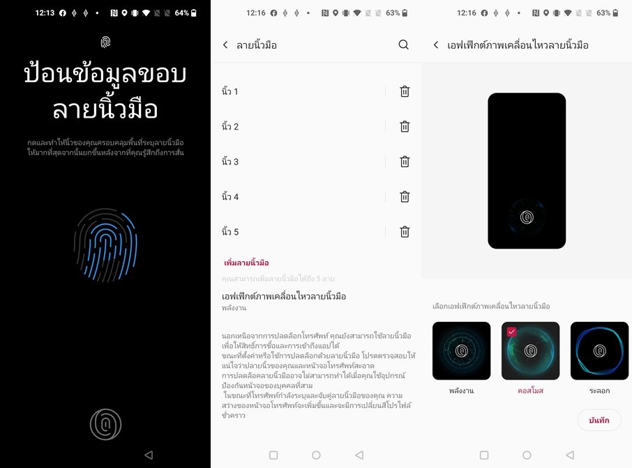 OnePlus Nord CE 5G รองรับแสกนลายนิ้วมือใต้หน้าจอ (In-display Fingerprint Sensor) รองรับสูงสุด 5 ลายนิ้วมือ และรองรับการสแกนใบหน้า ความเร็วและความแม่นยำทำได้ดีมาก นอกจากนี้ยังสามารถปรับแต่ง Effect ได้อย่างหลากหลาย นอกจากการสแกนลายนิ้วมือแล้วยังสามารถปรับแต่งในส่วนอื่นๆ ได้ด้วยนะครับ