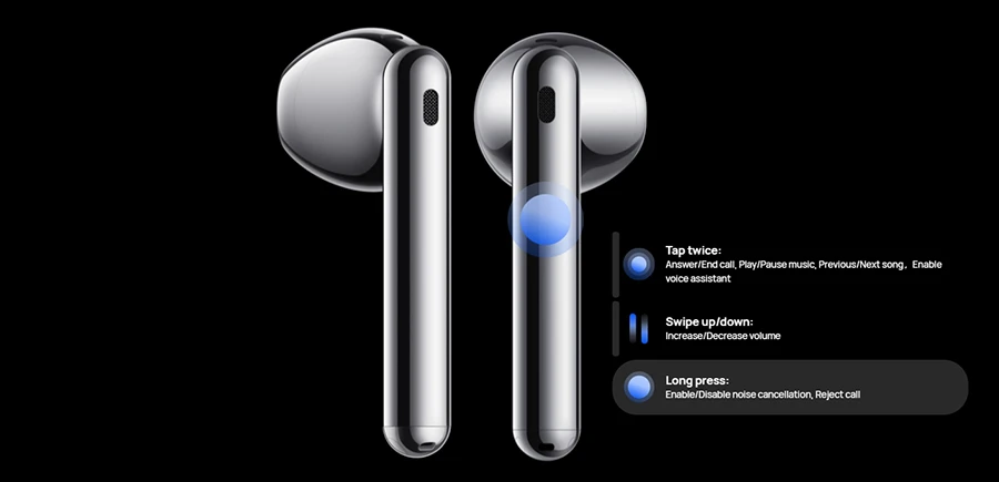 สำหรับหูฟังแบบ Open-fit ตัวล่าสุดที่จะมาพร้อมกับเทคโนโลยี AEM ที่ว่านี้ก็คือ "HUAWEI FreeBuds 4" หูฟังไร้สาย สไตล์ Open-fit ซึ่งตัวหูฟังจะมาพร้อมกับฟีเจอร์เด่นอื่นๆ ที่จะช่วยดึงศักยภาพของเทคโนโลยี AEM ออกมาได้อย่างเต็มที่ ฟีเจอร์แรกคือระบบตัดเสียง ANC รุ่น 2.0 ที่ได้รับการอัปเกรดให้ส่งมอบงานตัดเสียงรบกวนได้ดีขึ้น ซึ่งเกิดขึ้นได้จากการลงทุนในด้านวิจัยและพัฒนา (R&D) อย่างต่อเนื่องตลอดหลายปีที่ผ่านมา โดยสามารถตัดเสียงรบกวนรอบข้างได้สูงสุด 25 เดซิเบล โดยสามารถเปิดปิด ANC ได้ง่ายเพียงปลายนิ้วสัมผัส เพียงแตะค้างที่ก้านหูฟังข้างใดข้างหนึ่ง