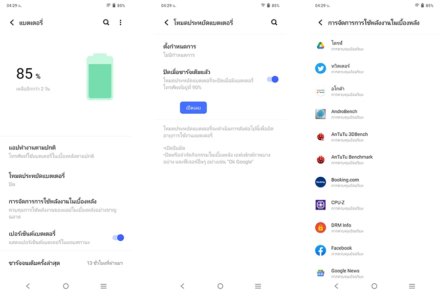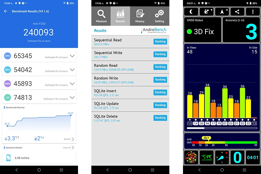 - ทดสอบประสิทธิภาพการทำงานด้วยแอปพลิเคชั่น Antutu Benchmark ได้คะแนนรวม 240,093 คะแนน