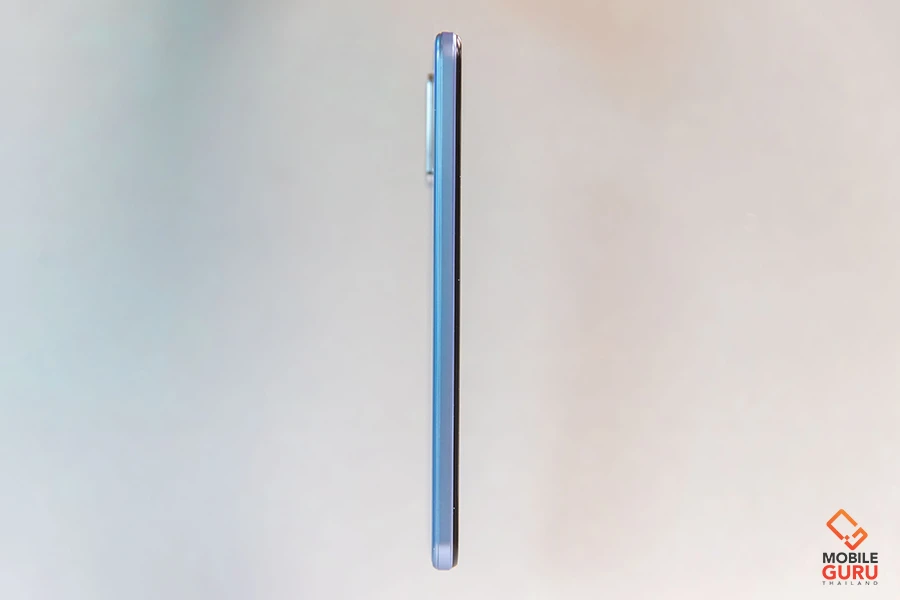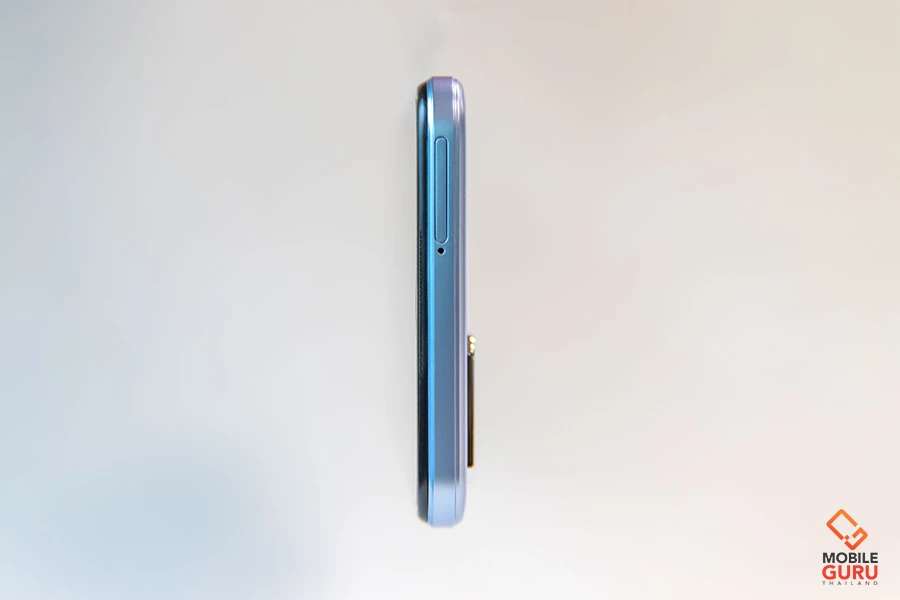 ด้านซ้ายของตัวเครื่องไม่มีพอร์ตเชื่อมต่อใด ๆ ส่วนทางด้านซ้ายของตัวเครื่องจะมีปุ่มสำหรับปรับเพิ่ม-ลดระดับเสียง (Volume) เมื่อขยับลงมาด้านล่างเล็กน้อย จะเจอปุ่ม Power สำหรับเปิด-ปิดตัวเครื่องและพักการใช้งานหน้าจอ ที่ออกแบบมาให้แบนราบเพื่อใช้เป็นตำแหน่งสำหรับสแกนลายนิ้วมือในตัวด้วย