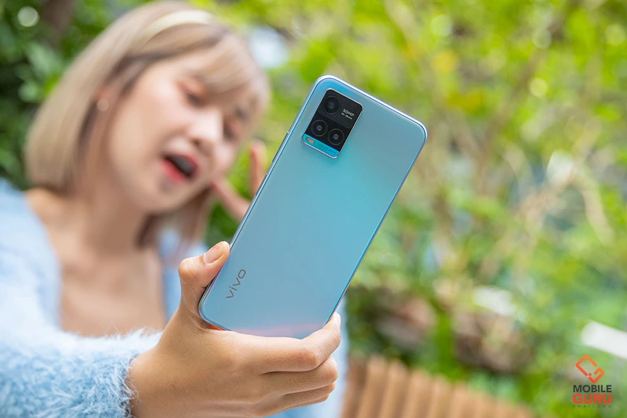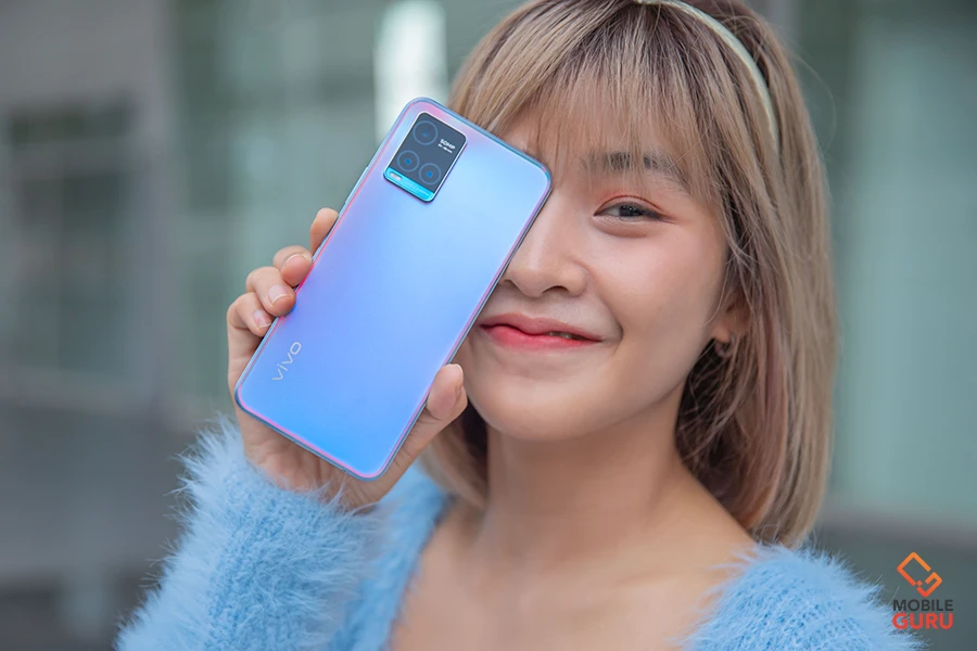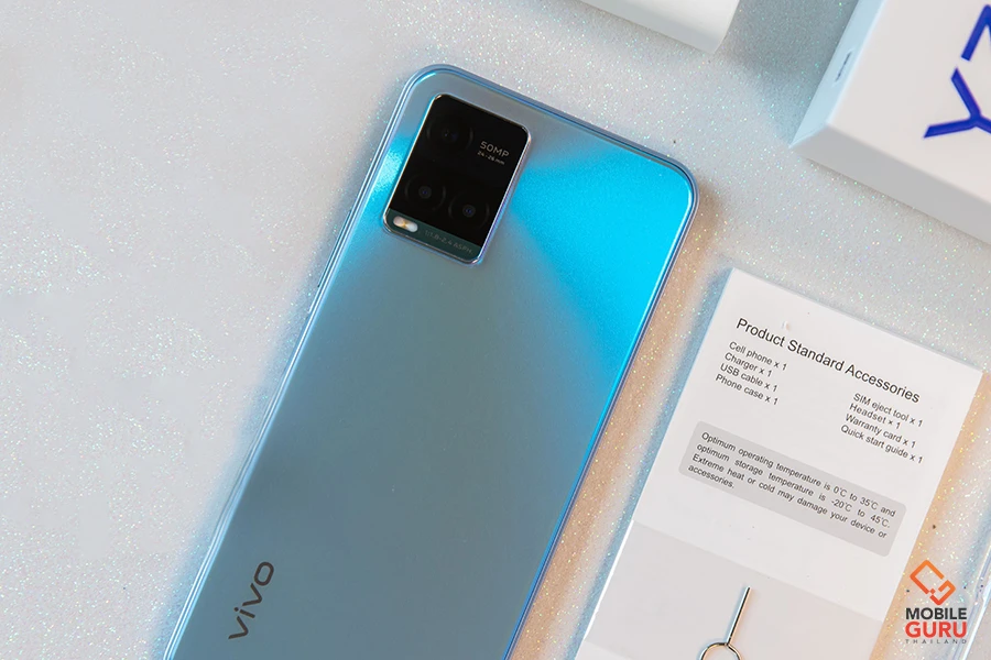 ฝาหลังของตัวเครื่อง มีโลโก้ vivo สีเงิน อยู่ในตำแหน่งด้านล่างซ้าย มาพร้อมกล้องหลัง 3 เลนส์ 50MP Super Night Camera ติดตั้งไว้ในตำแหน่งด้านบนซ้าย ประกอบด้วย เลนส์หลักความละเอียด 50 ล้านพิกเซล ค่ารูรับแสงกว้าง f/1.8, เลนส์ Bokeh ความละเอียด 2 ล้านพิกเซล ค่ารูรับแสงกว้าง f/2.4 และเลนส์ Macro ความละเอียด 2 ล้านพิกเซล ค่ารูรับแสงกว้าง f/2.4 พร้อมไฟแฟลช LED จัดเรียงในรูปแบบ Dual Tone Step อันเป็นเอกลักษณ์การออกแบบที่เรียบง่ายและสวยงามของวีโว่ โดยโมดูลสำหรับวางกล้องนี้จะค่อนข้างนูนออกมาจากฝาหลังเล็กน้อย สำหรับการใช้งานแบบใส่เคส ตัวเคสจะยกขอบตรงรูของโมดูลกล้องขึ้นมาให้พอดีกัน ทำให้สามารถป้องกันการตกหรือการที่ขอบอาจจะไปกระแทกกับเหลี่ยมโต๊ะได้ดีในระดับหนึ่ง ส่วนคนที่ชอบใช้แบบไม่ใส่เคสป้องกัน ก็อาจจะต้องระมัดระวังกันเป็นพิเศษหน่อยนะคะ