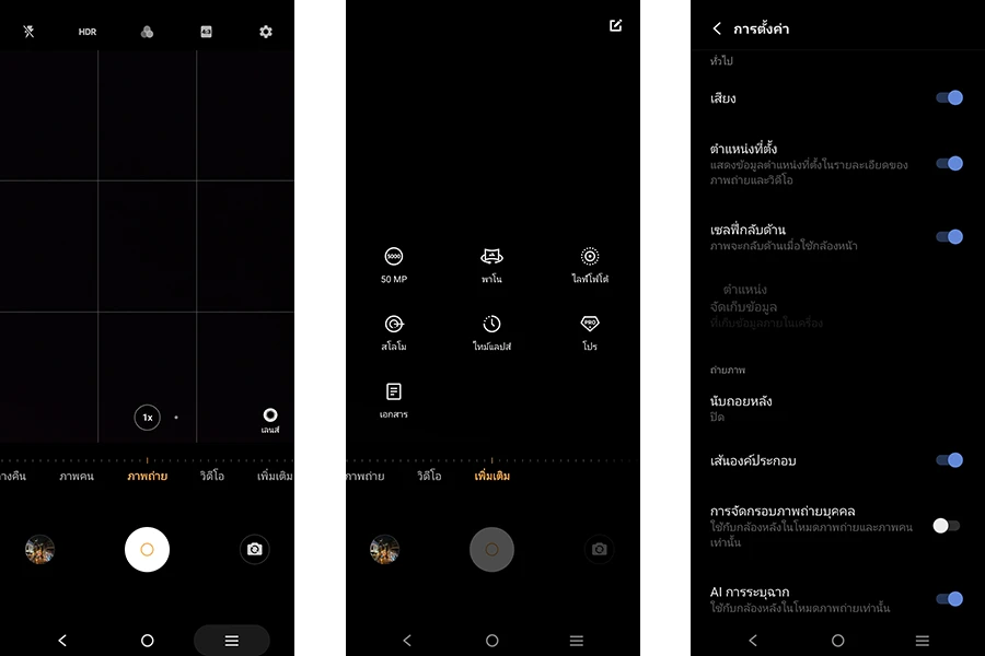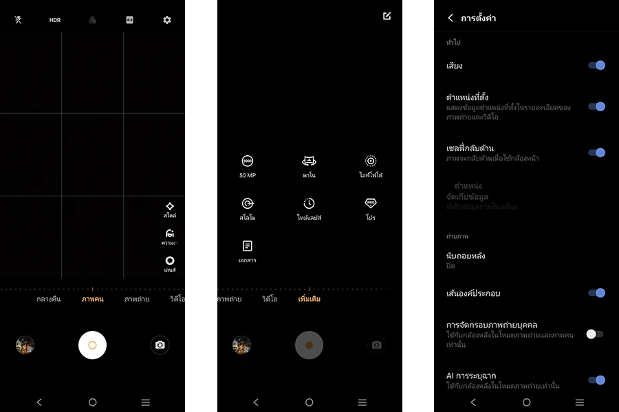 - กล้องหลัง 3 เลนส์ ประกอบด้วย เลนส์หลักความละเอียด 50MP + เลนส์ Bokeh ความละเอียด 2MP + เลนส์ Super Macro ความละเอียด 2MP