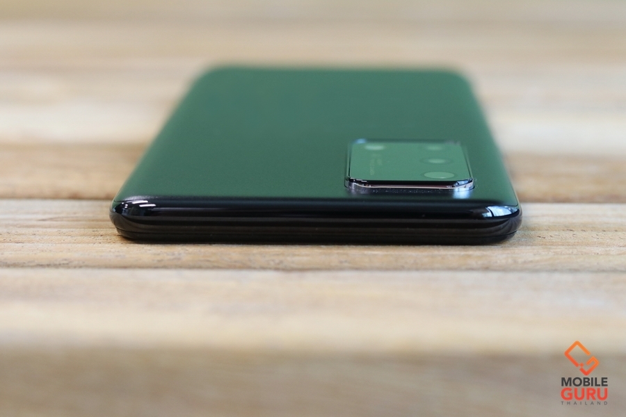 ด้านข้างจะเลือกใช้วัสดุผิวเงาแวววาวสีดำ ด้านบนเรียบๆ, ด้านล่างมีพอร์ทหูฟัง 3.5 มม., ไมโครโฟน, USB Type-C 2.0 และลำโพง, ด้านซ้ายมีช่องใส่ซิม (รุ่นนี้จะมาพร้อมถาดใส่ซิมแบบ Triple Slot) และปุ่มปรับระดับเสียง ส่วนด้านขวาจะเป็นปุ่ม Power