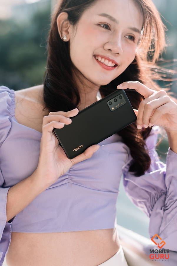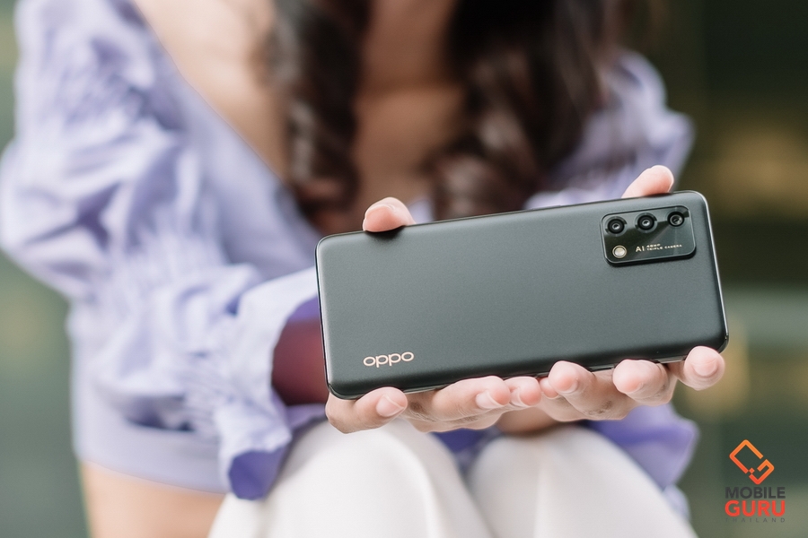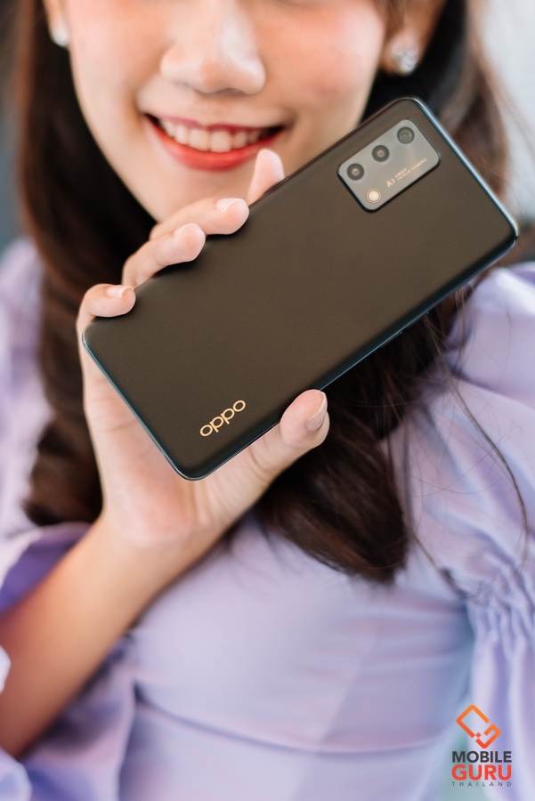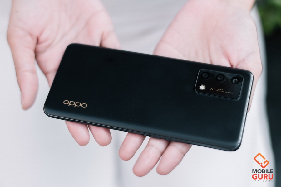 AI 3 กล้องหลัง ออกแบบให้มีประกายแวววาวสวยงามมาก ประกอบด้วยกล้องความละเอียด 48MP Main Camera F1.7, 2MP F2.4, (macro), 2MP F2.4, (depth) และไฟแฟลช LED และด้านหลังมีโลโก้ OPPO พิมพ์สีทอง ตัดกับสีดำ Glowing Starry Black ดูเท่มากๆเลยครับ