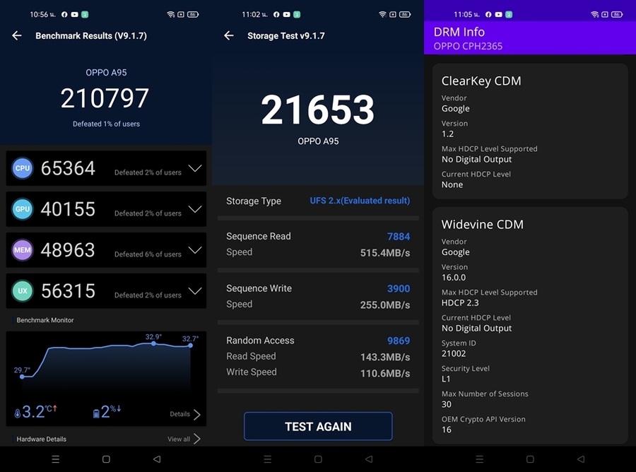 OPPO A95 ทำงานบน Android 11 ครอบทับด้วย ColorOS 11.1 มาพร้อมรายละเอียดสเปค Qualcomm Snapdragon 662, RAM 8GB + 5GB (RAM Expansion), ROM 128GB รองรับ microSDXC จากการทดสอบความเร็ว และความลื่นไหลทำได้ดีครับ เป็นสมาร์ทโฟนที่ปรุงรอมมาดีนะครับ ลงตัวเกินสเปค ฟีเจอร์ต่างๆจัดมาให้ครบไม่ว่าจะเป็น Alway On Display, Dark Mode, Smart Gesture, ฟีเจอร์โคลนแอปพลิเคชั่น, App Split-Screen การแบ่งหน้าจอหลากหลายรูปแบบ, Clone App สามารถใช้งานแอปพลิเคชั่นที่รองรับได้พร้อมๆกัน 2 บัญชีในเครื่องเดียว มีมาให้ครบทุกอย่างเลยครับ