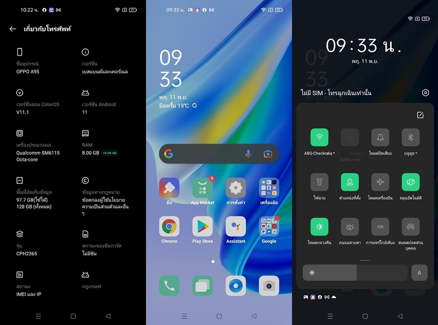 - ทำงานบน Android 11 ครอบทับด้วย ColorOS 11.1