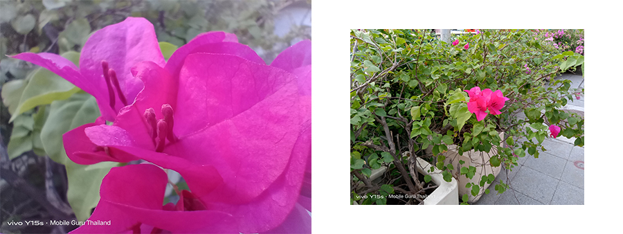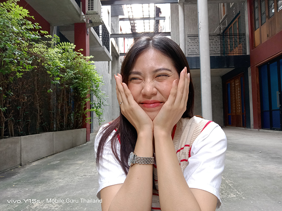 จากการทดสอบการใช้งานกล้องหลัง ได้ผลลัพธ์ภาพถ่ายของเจ้า vivo Y15s อยู่ในระดับกลาง ๆ ตามสเปคเลยค่ะ ให้ความคมชัดในระดับหนึ่ง แต่ไม่ได้ให้สีสันของภาพที่สดใสนัก มองว่าการประมวลผลของ AI ยังทำงานได้ไม่ค่อยดีเท่าไหร่ และต้องใช้ความมือนิ่งประมาณหนึ่งเลยในการถ่ายภาพให้ได้คมชัดสมบูรณ์ ส่วนตัวชื่นชอบโหมดฟิลเตอร์ (Filter) เป็นพิเศษ รู้สึกว่าฟิลเตอร์ของทางวีโว่ปรับสีออกมาได้สวยกำลังดีเลย สร้างลูกเล่นให้การถ่ายภาพได้อีกเยอะ ในส่วนของโหมดโบเก้ (Bokeh - หน้าชัดหลังเบลอ) เห็นชัดเลยว่ายังให้การตัดขอบได้ไม่คม แต่ทำออกมาได้ดีในส่วนของการเกลี่ยละลายฉากหลัง สำหรับโหมดซุปเปอร์มาโคร (Super Macro) สามารถถ่ายภาพระยะใกล้ได้คมชัดในระดับหนึ่ง แต่ต้องอาศัยความมือนิ่งและแสงมากสักหน่อยค่ะ โดยรวมถือว่าทำได้ไม่แย่เลย