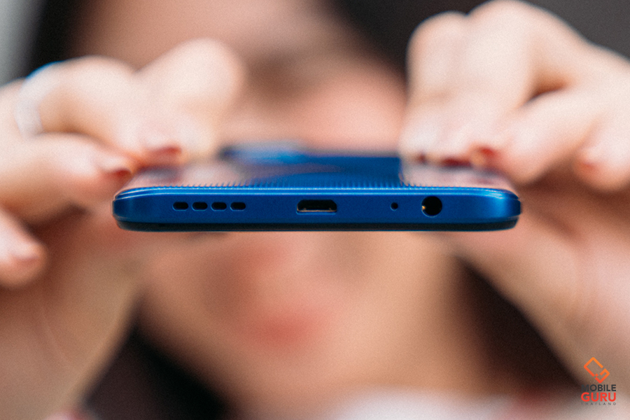 vivo Y15s มีให้เลือกด้วยกัน 2 สี ได้แก่ สีเขียว Wave Green และสีฟ้า Mystic Blue ซึ่งสีที่เรานำมารีวิวในวันนี้คือสีฟ้า Mystic Blue ค่ะ ความรู้สึกแรกที่ได้จับตัวเครื่องต้องบอกว่าให้สัมผัสที่ดีมาก ๆ ตัวสมาร์ตโฟนมีความบาง ไม่เทอะทะ ขอบข้างไปจนถึงฝาหลังมีความโค้งมนแบบสามมิติรับกับฝ่ามือ ทำให้ได้การจับที่ถนัด วัสดุตัวเครื่องทำจากพลาสติกที่ค่อนข้างแข็งแรงเลยทีเดียวค่ะ เคาะแล้วไม่เปราะ ไม่ก้องแก้ง ดูพรีเมียมไม่แพ้รุ่นใหญ่ ๆ เลย