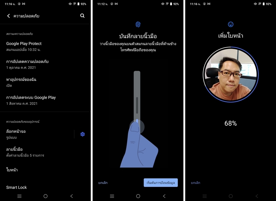- ลายนิ้วมือ ซึ่งเซ็นเซอร์สแกนลายนิ้วมือจะอยู่รวมที่ปุ่ม Power โดยสามารถปลดล็อกหน้าจอได้ในระยะเวลาเพียง 0.232 วินาทีเท่านั้น ซึ่งยืนยันเลยว่าทำได้จริงค่ะ ปลดล็อกได้รวดเร็วมากและเซ็นเซอร์มีความแม่นยำสูง เพียงแค่แตะก็สามารถเข้าใช้งานได้แล้ว