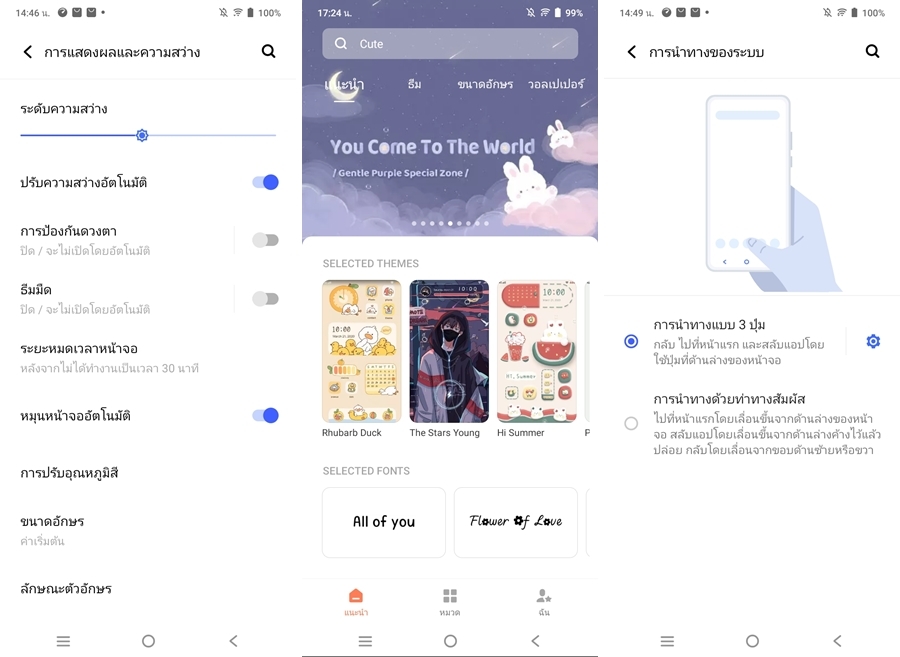 ในส่วนของการปรับแต่งการแสดงผล สามารถทำได้อย่างอิสระ ไม่ว่าจะเป็นขนาด/ลักษณะตัวอักษร, ธีม, ไอคอน และวอลเปเปอร์ที่มีให้เลือกอย่างหลากหลาย รวมไปถึงการปรับแต่งการนำทางด้วย เชื่อว่าถูกใจสายชอบแต่งหน้าโฮมสมาร์ตโฟนแน่นอน
