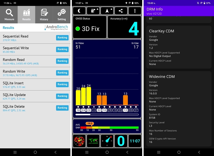 - ทดสอบด้วยแอปพลิเคชัน AndroBench ทำความเร็ว Storage ในการอ่านอยู่ที่ 270.97 MB/s และการเขียน 85.08 MB/s ทำความเร็ว RAM ในการอ่านอยู่ที่ 56.19 MB/s และการเขียน 37.78 MB/s