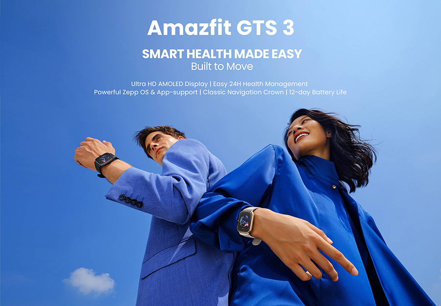 Amazfit GTS 3 สมาร์ตวอทช์อัจฉริยะรุ่นใหม่ใน Amazfit GT3 Series ที่มาพร้อมคอนเซ็ปต์ "Smart Health Made Easy - Built to Move" ซึ่งเป็นรุ่นที่ราคาเบาที่สุดของซีรีส์นี้ แต่มาพร้อมฟีเจอร์สำหรับดูแลสุขภาพและการออกกำลังกายที่ครบพร้อม แมทช์กับวิถีการใช้ชีวิตของผู้คนในยุคนี้เป็นอย่างดี