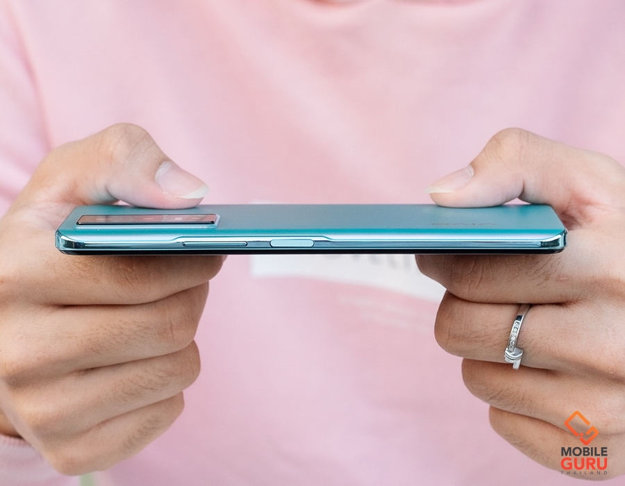 vivo Y76 5G มาพร้อมดีไซน์ที่หรูหรากว่าที่เคย หยิบยกเอาจุดเด่นของดีไซน์ในรุ่นใหญ่มาใส่ใน vivo Y Series ได้อย่างน่าสนใจและลงตัวมากๆ มาพร้อมวัสดุฝาหลังเคลือบ Satin AG มอบสัมผัสที่ดูหรูหรา เป็นประกายระยิบระยับ และก่อให้เกิดรอยนิ้วมือได้ยากกว่าปกติ มีให้เลือก 2 สี ได้แก่ Midnight Space และ Cosmic Aurora สำหรับสีที่เรานำมารีวิวในวันนี้จะเป็นสี Cosmic Aurora นะครับ ซึ่งจะมาพร้อมเทคนิคการเคลือบสีแบบกลิตเตอร์ผสมผสานกับคริสตัล ออกแบบให้มีโทนสีฟ้าและส้ม จนได้เฉดสีที่สดใสสวยงาม ดูมีมิติ และจะเปลี่ยนแปลงสีสันไปตามมุมมองของตัวเครื่องเมื่อกระทบกับแสง สวยงามมากๆครับ ดูมีความเป็นสีเมทัลลิคยิ่งกว่ารุ่นระดับบนๆอีกนะครับ