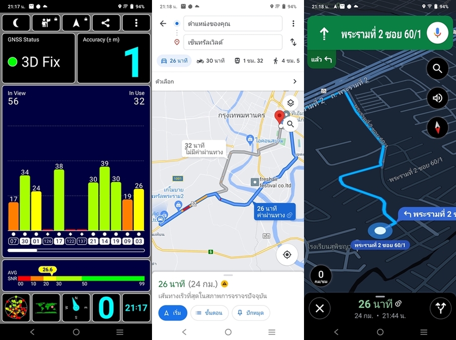 - ทดสอบสัญญาณ GPS จับสัญญาณได้รวดเร็ว