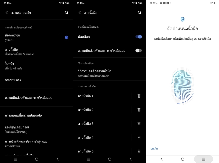 - เซ็นเซอร์ Fingerprint (side-mounted), accelerometer, gyro, proximity, compass