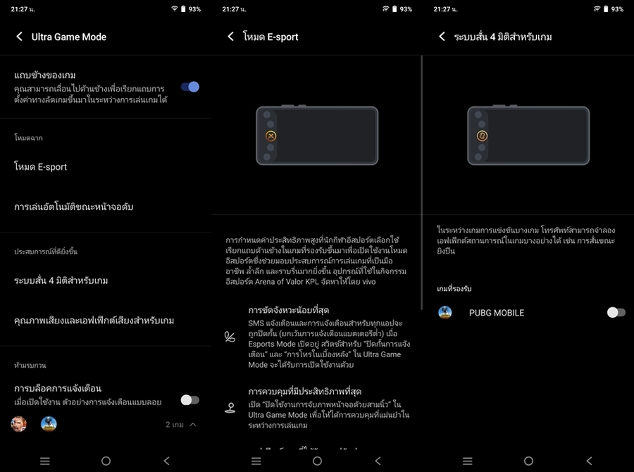 vivo Y76 5G มาพร้อมฟีเจอร์ Ultra Game Mode 2.0 สลับระหว่างโหมด "ประหยัดแบตเตอรี่" "สมดุล" และ "ประสิทธิภาพ" ทันทีด้วยแถบด้านข้างช่วยให้เราปรับโหมดได้ตามความเหมาะสม รองรับฟีเจอร์ Picture-in-Picture ที่ช่วยให้คุณสามารถแชทสนทนาขณะเล่นเกมได้อีกด้วย และป้องกันการแจ้งเตือนของข้อความ ฯลฯ ช่วยให้คุณเพลิดเพลินไปกับการเล่นเกมได้อย่างเต็มที่ไม่มีอะไรมาขัดจังหวะระหว่างการเล่น และรองรับฟีเจอร์ Multi-Turbo ช่วยในการยกระดับประสิทธิภาพ ทั้งการใช้งานเครือข่าย การกระจายความร้อน และประสิทธิภาพการเล่นเกมอย่างชาญฉลาดด้วยระบบ AI