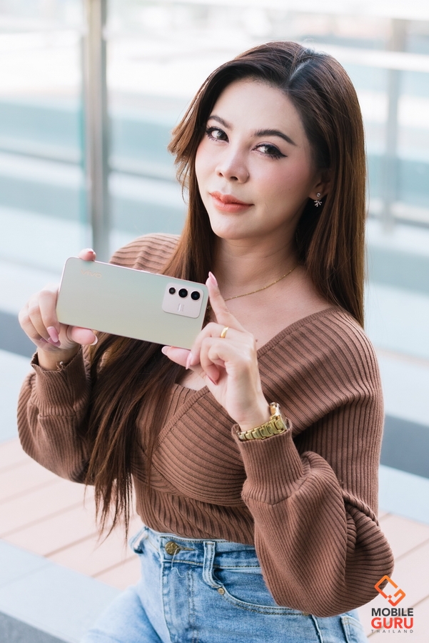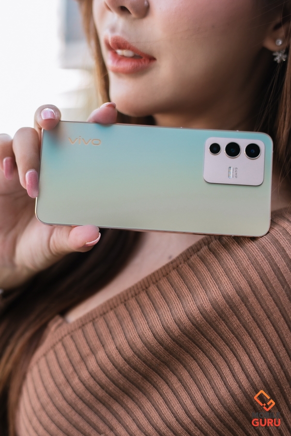 vivo V23 5G เป็นสมาร์ทโฟนรุ่นใหม่ล่าสุดรับปีใหม่ของทาง วีโว่ มาพร้อมสโลแกน คมชัดทุกโมเมนต์ที่เป็นคุณ ควงคู่มากับพรีเซนเตอร์ชื่อดังอย่าง "วิน เมธวิน โอภาสเอี่ยมขจร" นักแสดงผู้มากความสามารถ เรียกได้ว่าเลือกพรีเซนเตอร์ได้ร้อนแรงไม่ต่างจากในต่างประเทศเลยครับ สมาร์ทโฟนรุ่นนี้มีดีไซน์ที่สวยงามมาก เป็นสมาร์ทโฟนที่ดูเนี๊ยบในทุกรายละเอียด พร้อมรูปทรงเหลี่ยมและมีมุมที่โค้งมนสวยงามจับถือได้อย่างถนัดมือ มีความบางเพียง 7.4 มม. และมีน้ำหนักเบาเพียง 179 กรัม วัสดุพรีเมี่ยมกระจก และโลหะ สำหรับกระจกด้านหลังรองรับ Color Charging Glass (เฉพาะเครื่องสี Sunshine Gold) เทคโนโลยีฝาหลังกระจกเปลี่ยนสีได้ด้วยแสง UV, หน้าจอ AMOLED, Refresh Rate 90Hz, กล้องหน้าจัดเต็ม กล้องหน้าคู่ ความละเอียดสูง 50MP + 8MP (ultrawide) และมาพร้อม Dual Selfie Spotlight และรองรับระบบกันสั่น ส่วนกล้องหลัง 3 เลนส์ ความละเอียด 64MP + 8MP (ultrawide) + 2MP (macro) พร้อม Dual-LED flash และระบบกันสั่น รุ่นนี้ยังรองรับการบันทึกวิดีโอระดับ 4K 30FPS และ 1080P 60FPS ทั้งกล้องหน้า-หลังเลยครับ นอกจากนี้ยังมาพร้อมฟีเจอร์ถ่ายภาพที่อัดแน่นมาอย่างเต็มอิ่ม และยังทำงานบน Android 12 ครอบทับด้วย Funtouch OS 12 อีกด้วย