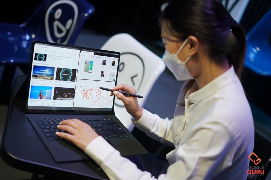 โดย Galaxy Tab S8 series ยังมาพร้อมประสบการณ์การใช้ งานเสมือนแล็ปท็อป ที่เร็วแรง เปิดหลายไฟล์ได้พร้อมกันโดยไม่ ต้องกังกล น้ำหนักเบา เชื่อมต่อกับ Keyboard Cover เพื่อการพิมพ์ผ่านคีย์บอร์ดได้ อย่างรวดเร็วถนัดมือ หรือหากต้องการเข้าสู่โหมดเดสก์ ท็อป เพื่อสัมผัสหน้าจอแสดงผลที่คุ้ นเคยบนหน้าจอมอนิเตอร์ขนาดใหญ่ ขึ้น ก็สามารถเชื่อมต่อผ่าน Samsung DeX ได้ง่ายดายเช่นกัน